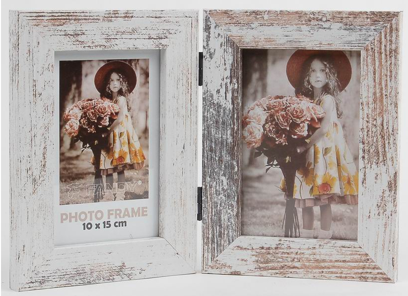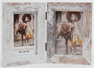 Drevená fotogaléria Narvik v retro dizajne, ktorá je určená na 2 fotografie v rozmere 10x15 cm.
